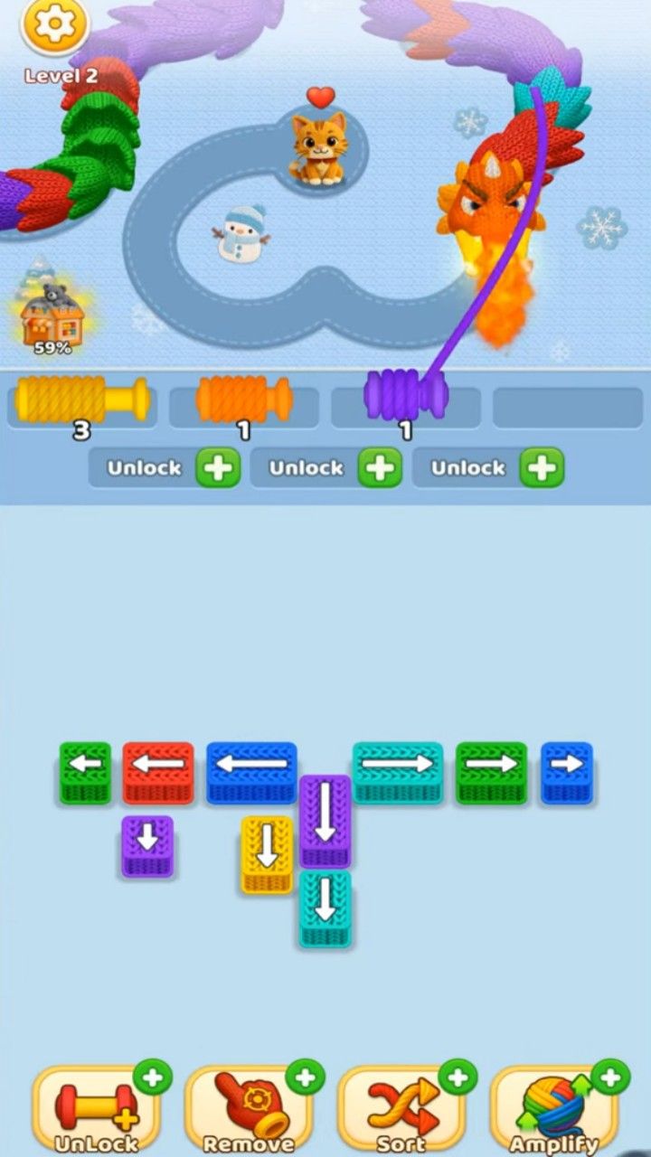 "Wool Crush" unfolds in a beautifully illustrated world, reminiscent of a cozy craft fair brimming with colorful displays. The game's aesthetics are striking, featuring vivid yarn balls that burst with color against serene backgrounds. Each level is adorned with whimsical elements, from friendly critters watching over your sorting efforts to magical gardens that change with each new challenge. The visual appeal is complemented by gentle, uplifting music that enhances the immersive experience, making players feel right at home in this yarn-filled paradise.